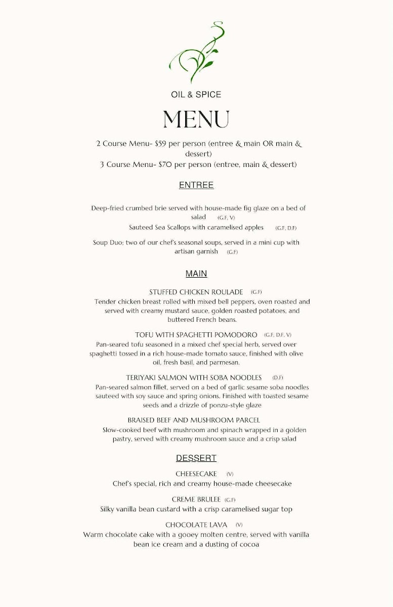 Welcome to Oil & Spice Cafe and Restaurant, a delightful culinary gem located at 340 Hannan St, Kalgoorlie. This charming café prides itself on a menu that artfully balances innovation and comfort. Highlights include the Stuffed Chicken Roulade and the flavorful Tofu With Spaghetti Pomodoro, catering to diverse palates. Sea lovers will adore the Teriyaki Salmon With Soba Noodles, while the hearty Braised Beef And Mushroom Parcel promises to warm the heart.